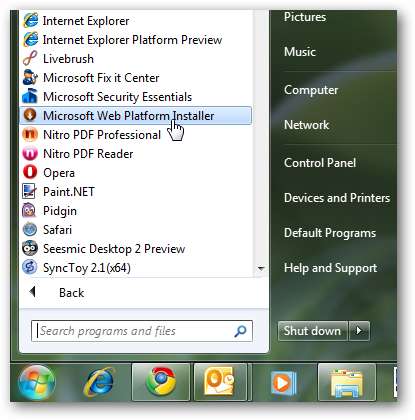 Accesați site-ul de dezvoltare web Microsoft și descărcați platforma de instalare web ( link dedesupt ). Acest lucru se va descărca foarte rapid, deoarece este doar un încărcător mic. Când rulați acest încărcător, acesta va descărca fișierele Web Platform Installer. Programul de instalare a platformei web funcționează pe XP, Vista și Windows 7, precum și versiunile conexe ale Windows Server.