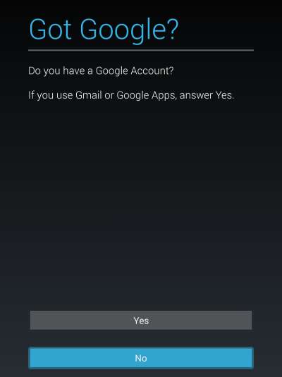 După ce veți face acest lucru, veți vedea ecranul tipic de întâmpinare. Când vi se cere dacă aveți un cont Google, atingeți Nu și selectați Nu acum. Acest lucru vă va permite să creați un cont de invitat care va funcționa ca un cont de utilizator normal, cu excepția faptului că nu veți putea utiliza opțiunile care necesită un cont Google. Oaspeții vă pot ridica tableta și pot folosi aplicațiile implicite, cum ar fi browserul Chrome, YouTube, Google Maps și alte aplicații. Cu toate acestea, nu vor putea instala aplicații fără a crea un cont Google, deoarece Google Play nu va funcționa.