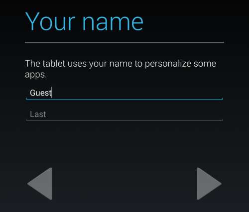 Continuați procesul de întâmpinare, introducând Guest sau un nume similar pentru noul dvs. cont de utilizator.