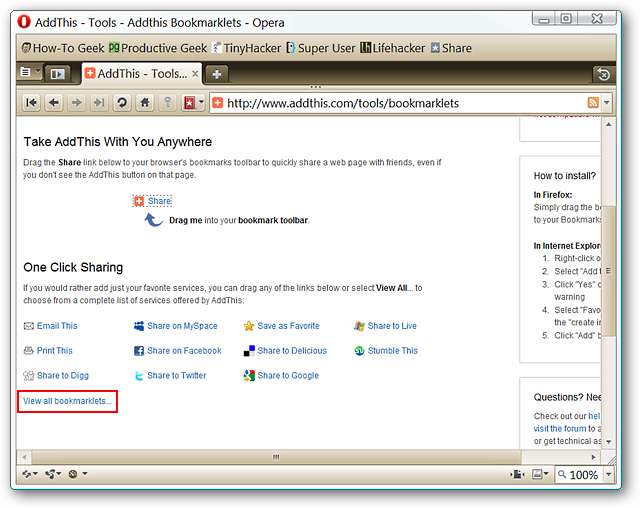 Notă editor: AddThis Bookmarklets sunt compatibile cu Opera, Firefox, IE 7 și versiunile ulterioare, Safari și Chrome. Nu sunt compatibile cu IE 6 (pe care oricum nu ar trebui să le utilizați pentru navigarea zilnică).