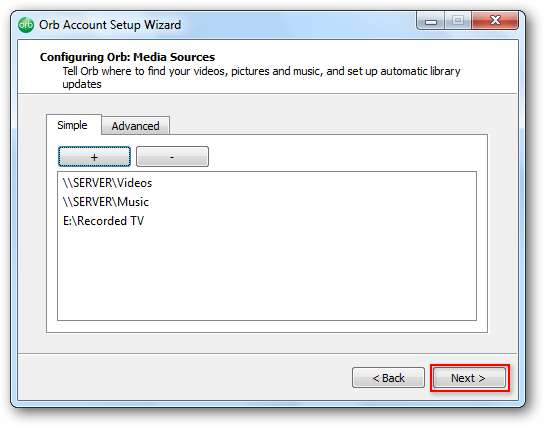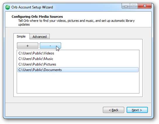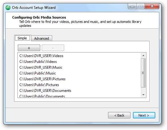 Acum veți dori să vă alegeți sursele media. Orb va căuta automat dosare care pot conține fișiere media.
