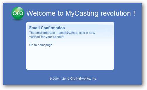 Contul dvs. va fi confirmat. Acum suntem gata să ne bucurăm de media de la distanță. Pentru a începe, direcționați browserul către site-ul MyCast de pe computerul de la distanță. (Vezi link-ul de mai jos)