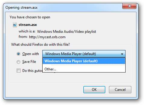 Redarea va începe în playerul media implicit pentru formatul de streaming.