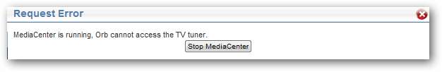 Dacă încercați să transmiteți în direct TV în orb în timp ce Windows Media Center rulează pe computerul dvs., veți primi un mesaj de eroare. Apasă pe Opriți MediaCenter și apoi încercați din nou.