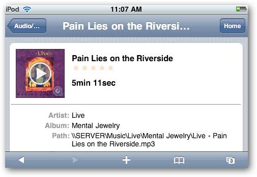 Pe Audio ecran, veți găsi fișierele dvs. muzicale indexate după gen, artist și album. Puteți reda o selecție făcând clic o dată și apoi făcând clic pe butonul verde de redare sau pur și simplu făcând dublu clic.