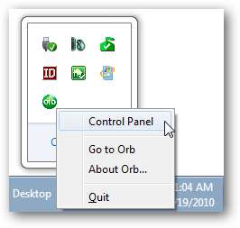 În mod implicit, Orb rulează în tava de sistem la pornire. Pentru a accesa panoul de control al tăvii de sistem, faceți clic dreapta pe pictograma Orb din tava de sistem și selectați Panou de control.
