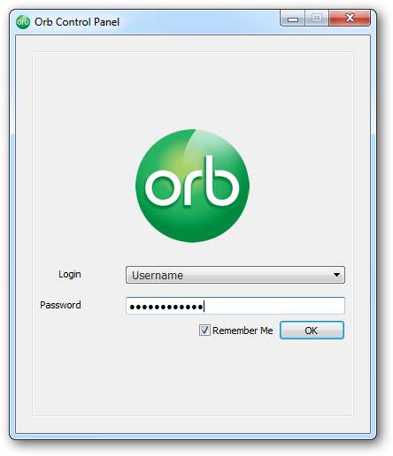 Conectați-vă cu numele de utilizator și parola Orb și faceți clic pe O.K.
