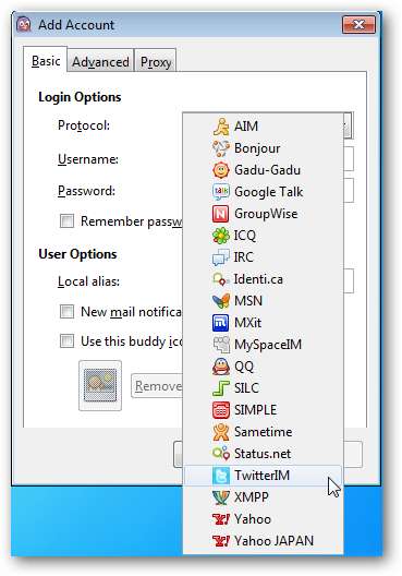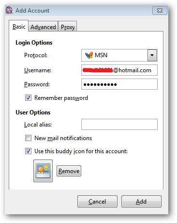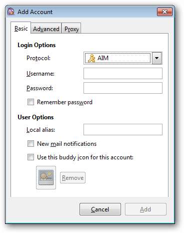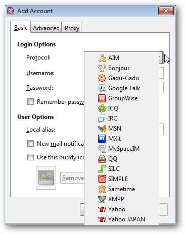 Selectați clientul de mesagerie pe care doriți să îl adăugați și specificați numele de utilizator și parola.