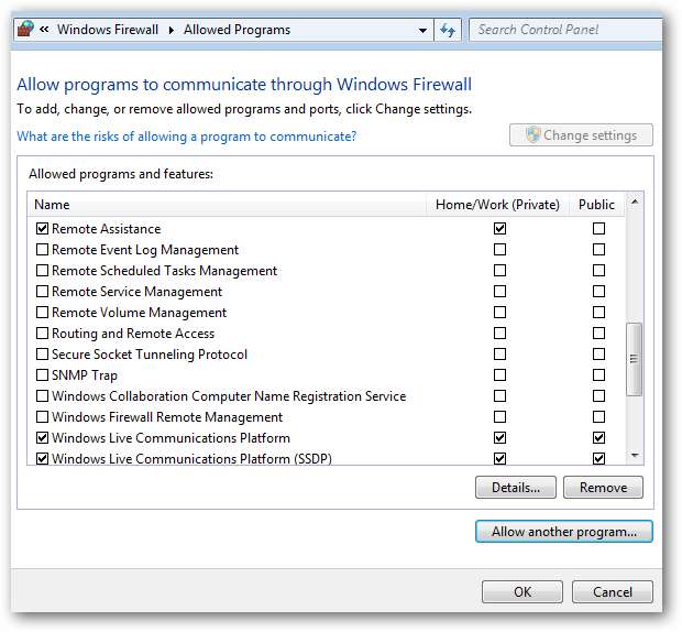 Dacă nu, adăugați Pidgin în lista de firewall „Programe și caracteristici permise” făcând clic pe butonul „Permiteți un alt program”.
