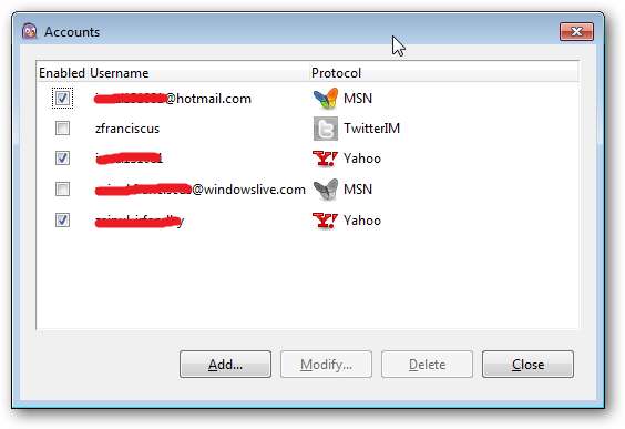 Puteți adăuga mai multe rețele de chat în Pidgin din meniul „Gestionați conturile”.