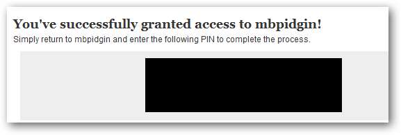 Trebuie să introduceți codul PIN generat de Twitter în Pidgin.