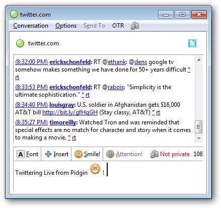 Acum sunteți pregătiți să trimiteți un Tweet de la Pidgin.