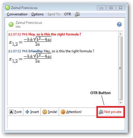 Pluginul OTR creează patru niveluri de confidențialitate și putem activa un chat privat dând clic pe butonul OTR.