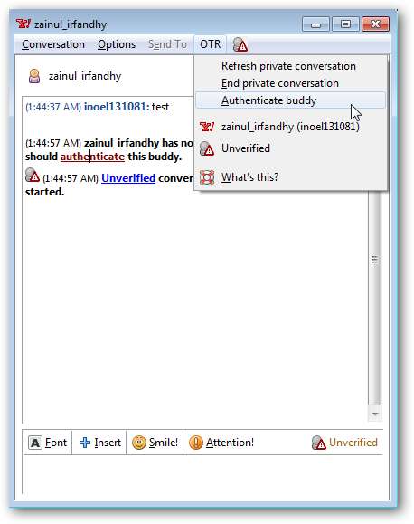 Vă puteți autentifica prietenul selectând „Authenticate Buddy” din meniul OTR.