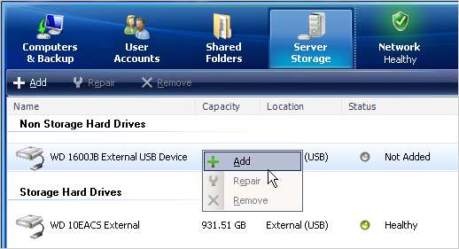 - Faceți backup dosarelor Windows Home Server pe un hard disk extern