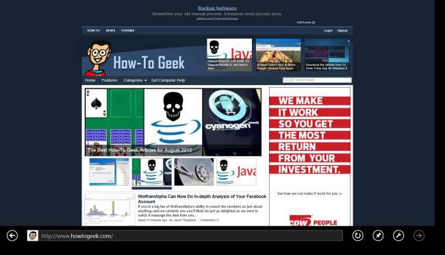 Versiunea Windows UI a IE10 este o versiune bare bones, optimizată pentru navigare mai rapidă și dispozitive tactile, dar funcționează bine și cu tastatură și mouse.