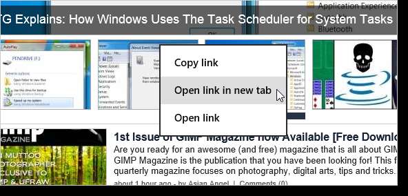 Când faceți clic pe linkuri în rezultatele căutării barei de adrese, utilizați Shift + Click pentru a deschide un link într-o filă nouă și aduceți focalizarea în acea filă și Ctrl + Faceți clic pentru a deschide un link într-o filă de fundal, dar păstrați fila curentă activă. Așa cum s-a menționat în secțiunea de navigare, utilizați Shift + Click pentru a deschide link-uri din țiglele de site-uri fixate sau frecvente într-o filă nouă și aduceți focalizarea în fila respectivă.