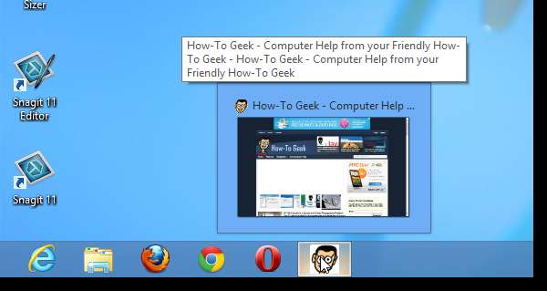 Site-urile fixate pe bara de activități afișează, de asemenea, miniaturi.