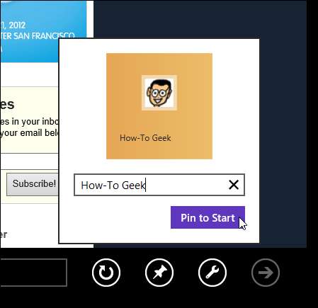 Se afișează o casetă de dialog care vă permite să schimbați numele care se afișează pe țiglă pentru site-ul fixat, dacă doriți. Introduceți un nume nou în caseta de editare, dacă doriți să schimbați numele și faceți clic pe Fixare pentru a începe.