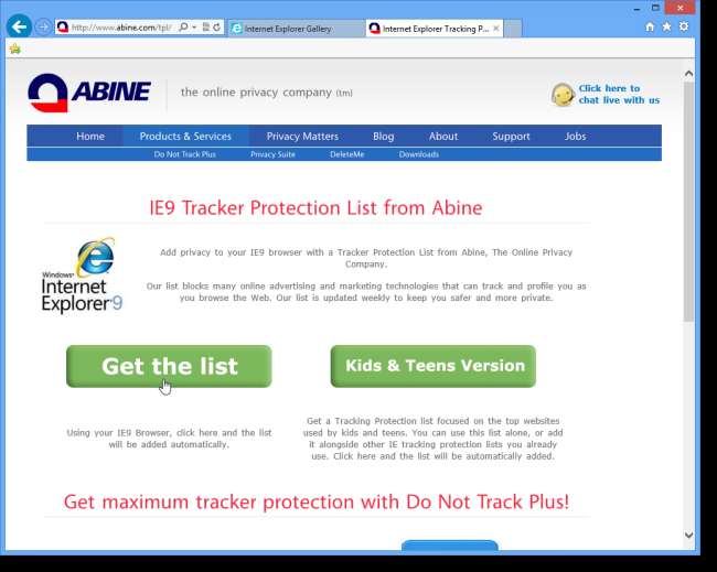 NOTĂ: Site-ul poate spune că lista este pentru IE9, dar va funcționa și în IE10.