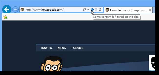 Când vizitați un site care conține conținut pe care Protecția urmăririi îl filtrează, în bara de adrese se afișează o pictogramă albastră Nu urmăriți. Faceți clic pe pictogramă pentru a dezactiva protecția de urmărire sau numai site-ul respectiv.