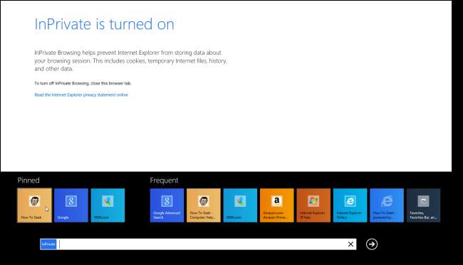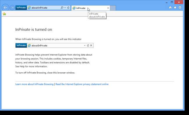 NOTĂ: Deoarece versiunea modernă UI / Metro a IE10 nu acceptă mai multe ferestre de browser, puteți utiliza Browsing InPrivate numai într-o filă nouă.