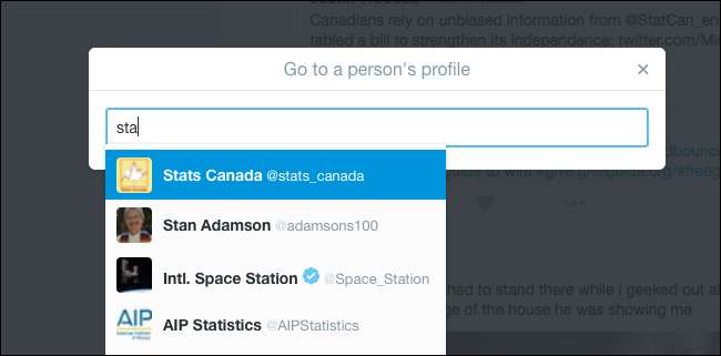 Începeți să tastați utilizatorul al cărui profil doriți să îl vedeți și apăsați „Enter” când îl vedeți pe cel potrivit. Veți fi dus la profil. Când ați terminat de răsfoit tweeturile utilizatorilor, apăsați „g” urmat de „h” pentru a reveni la cronologia dvs.