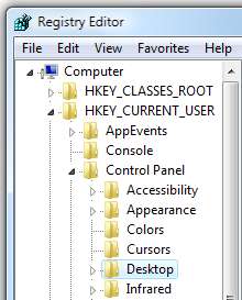 De aici trebuie să extindem panoul de control HKEY_CURRENT_USER Faceți clic pe Desktop