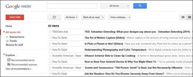 Există atât de mulți cititori de feed-uri puternici și excelenți pe piață încât nu avem nicio modalitate de a le acoperi (sau chiar a rezuma) pe toți. La sfârșitul acestui ghid, vom evidenția o varietate de cititoare de feed-uri bazate pe web și dedicate pe care le puteți verifica, dar deocamdată vom folosi Google Reader pentru a evidenția modul de utilizare a fluxurilor RSS.