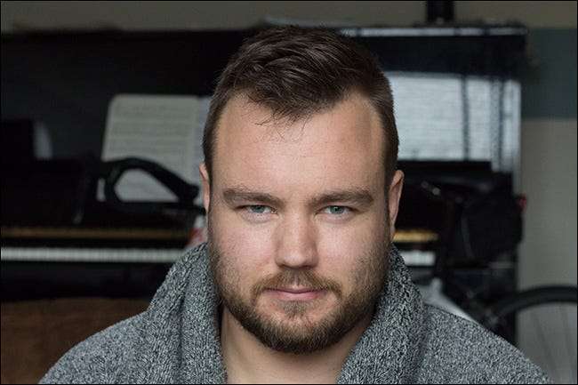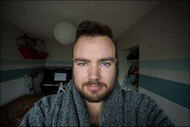 Lentile cu unghi larg sunt complet afară, cel puțin pentru portretele tradiționale. Uită-te la fotografia de mai jos. Acesta a fost filmat ca un selfie cu un obiectiv de 17 mm pe o cameră cu cadru complet. Arăt ca ceva dintr-un film al lui Guillermo del Toro.