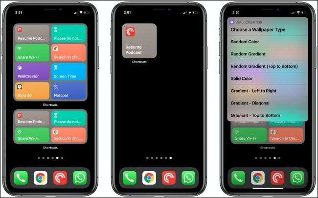 Приложение ярлыков имеет три разных виджета, которые вы можете использовать для запуска ярлыков прямо с домашнего экрана. Небольшой виджет показывает один ярлык, среда показывает четыре, а большие показывает восемь.