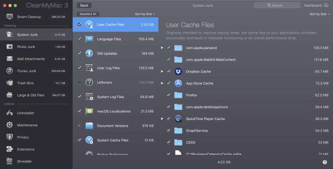В вашей системе есть много других временных файлов, которые вы можете увидеть, открыв Finder, используя Go -> Go to Folder в меню и используя ~ / Library / Caches, чтобы попасть в папку кеша. Это откроет папку с множеством папок, которые вы можете выбрать и удалить вручную, если захотите.