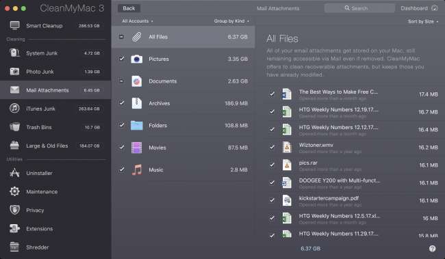 Если вы хотите автоматически очищать и удалять старые вложения, есть только одно хорошее решение, о котором мы знаем, и это CleanMyMac . Вы можете запустить сканирование, перейти к почтовым вложениям и увидеть все вложения, которые можно удалить. Нажмите «Очистить», и ваш жесткий диск освободится от них. Эти вложения по-прежнему будут на вашем почтовом сервере, если вы используете IMAP, поэтому вы можете удалить все, не беспокоясь об этом.