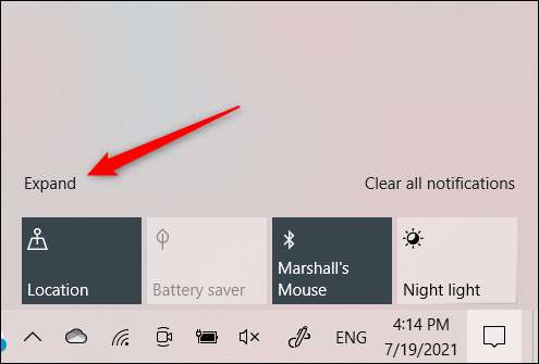 Затем нажмите «Развернуть» в левом нижнем углу Action Center.