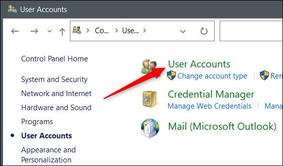 Один раз в панели управления нажмите «Учетные записи пользователей».