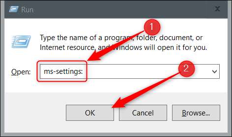 Вы также можете использовать приложение для запуска, чтобы открыть настройки. Откройте приложение для запуска, используя ярлык клавиатуры Windows + R. Однажды открыть, введите