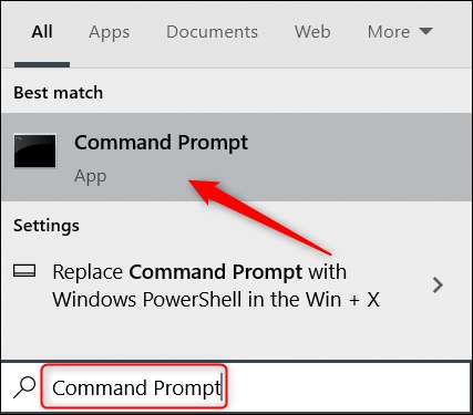 Вы можете запустить простую команду в командной строке, чтобы открыть приложение настроек. Первый, Откройте командную строку Набирая «командную строку» в панели поиска Windows, а затем нажать приложение «командная строка» из результатов поиска.