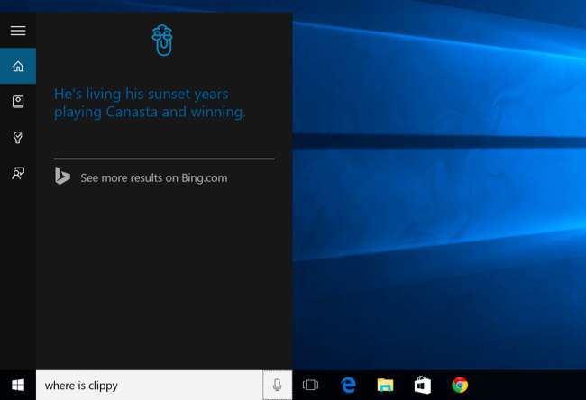 Как и Siri, Кортана может «болтать» о разных вещах и быстро отвечать на глупые вопросы. Задайте Кортане вопрос вроде «Где Клиппи?» или даже дайте инструкции вроде «Расскажи мне историю», «Расскажи анекдот», «Спой мне песню» или «Удиви меня!»