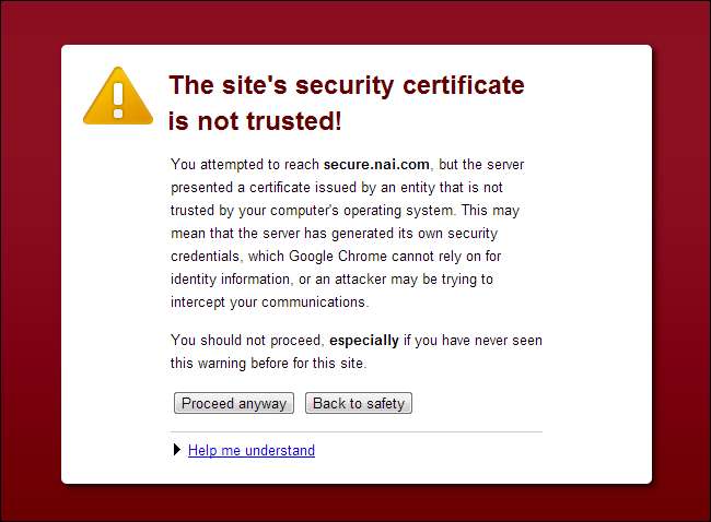 Обратите внимание, что в каждом браузере страницы ошибок отображаются и озвучиваются по-разному. Ошибка сертификата или предупреждение о вредоносном ПО выглядят по-разному в разных браузерах, но разные типы страниц с ошибками означают одно и то же.