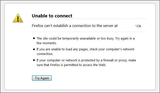 Сообщение об ошибке «Не удается подключиться» в Firefox или «Google Chrome не удалось подключиться к [website.com]» похоже на сообщение «Сервер не найден» выше, но каждое из них означает что-то другое.
