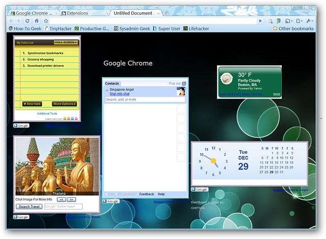 Это то, что вы увидите, как только вы откроете новую вкладку в Chrome. На данный момент доступно пять гаджетов: