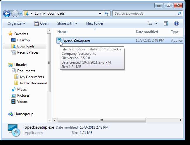 Установить Speckie просто. Просто дважды щелкните загруженный файл .exe (см. Ссылку для загрузки в конце этой статьи) и следуйте инструкциям мастера установки, нажав Да в Диалоговое окно "Контроль учетных записей пользователей" , если нужно.