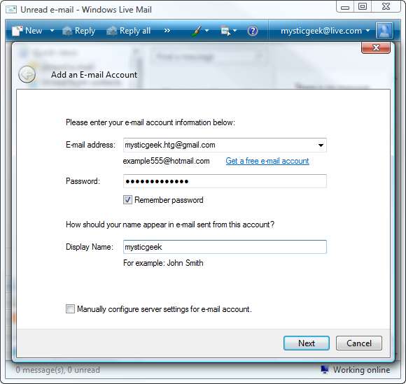** Примечание: это для Почта Windows Live а не Windows Mail, которая заменила Outlook Express и включена в Vista. Почта Windows Live это отдельная загрузка через Службы Windows Live . Компьютерщик написал отличную статью о настройка Gmail для Vista Mail **