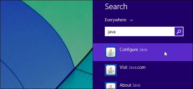 Этот параметр скрыт в панели управления Java. Чтобы получить к нему доступ, нажмите клавишу Windows один раз, чтобы открыть меню «Пуск» или начальный экран, и введите Java. Щелкните ярлык «Настроить Java».