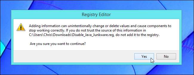Загрузите файл Disable_Java_Junkware.zip , дважды щелкните его, чтобы открыть, и дважды щелкните файл Disable_Java_Junkware.reg, чтобы добавить значения в реестр. (Вы можете щелкнуть правой кнопкой мыши файл .reg и нажать кнопку «Изменить», чтобы проверить, что он будет делать; не стесняйтесь проверять загруженный файл .reg перед его запуском.)