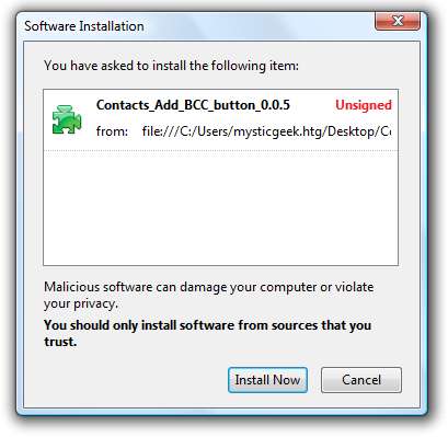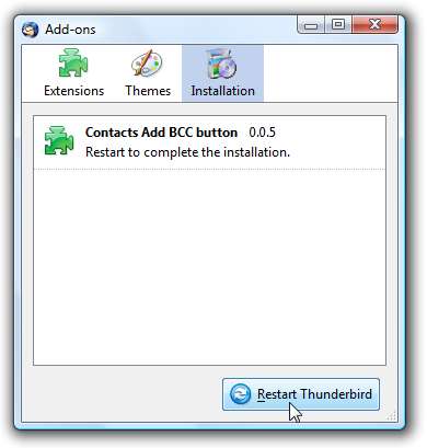 Подключаемый модуль Thunderbird Контакты Добавить кнопку BCC тоже пригодится. Сначала загрузите расширение на свой жесткий диск. Затем в Thunderbird перейдите в Инструменты Addons и нажмите кнопку Install.
