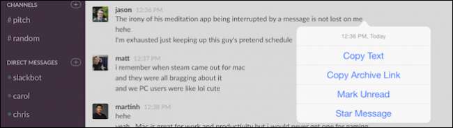 Сказал ли кто-нибудь в вашей организации что-нибудь смешное или примечательное, на что вы хотите привлечь внимание в ходе бесед? Щелкните правой кнопкой мыши метку времени сообщения или нажмите и удерживайте сообщение в мобильном приложении и скопируйте ссылку Slack.