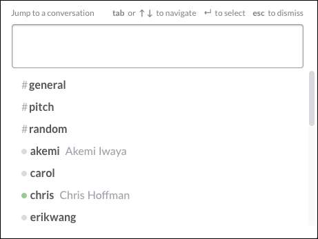 Наведение и щелчок настолько неэффективны, когда вы можете просто использовать «Command + K» (Mac) или «Control + K» (Windows), чтобы легко переключаться между каналами и коллегами.