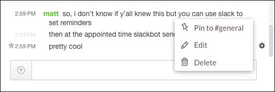 Большинство пользователей Slack, вероятно, уже знают, что вы можете редактировать все, что набираете, щелкнув маленький значок шестеренки рядом с вашим сообщением и выбрав «Изменить» (или «Удалить», если вы просто хотите убрать его).