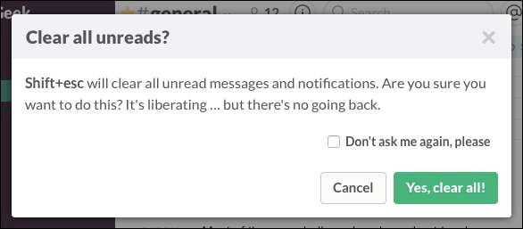 Если вы хотите удалить все свои мгновенные сообщения и новые элементы в каждом канале, вы можете использовать комбинацию «Shift + Esc».